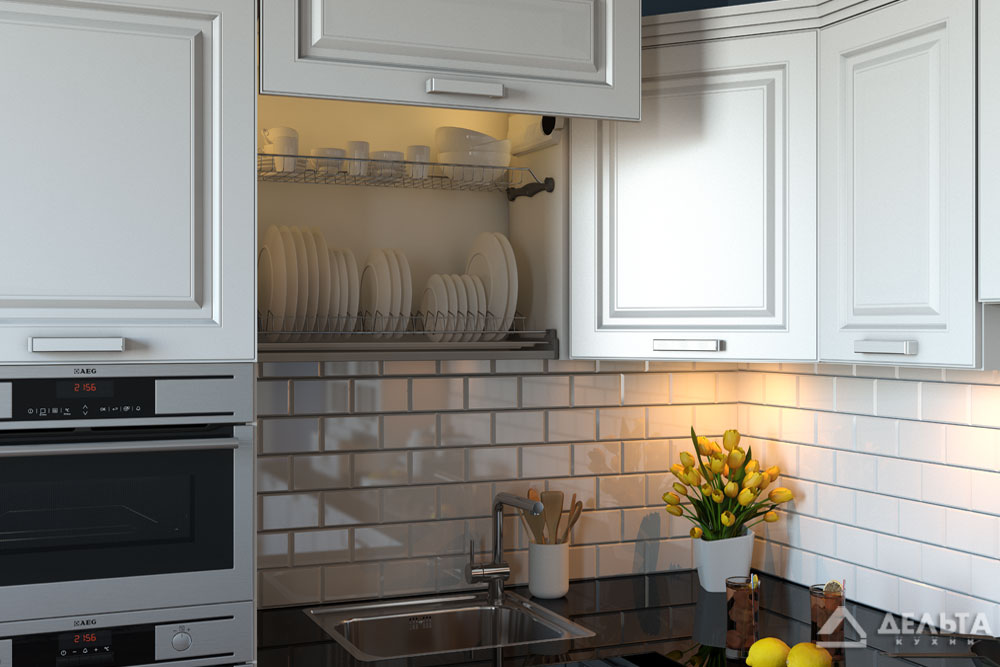 Кухня «Палаццио» в неоклассическом стиле сохраняет сдержанный и благородный характер классицизма: все пропорции чётко выверены, компоновка кухни сбалансирована и подчиняется законам симметрии. В тоже время вся композиция необычайно легка и изящна, в ней н