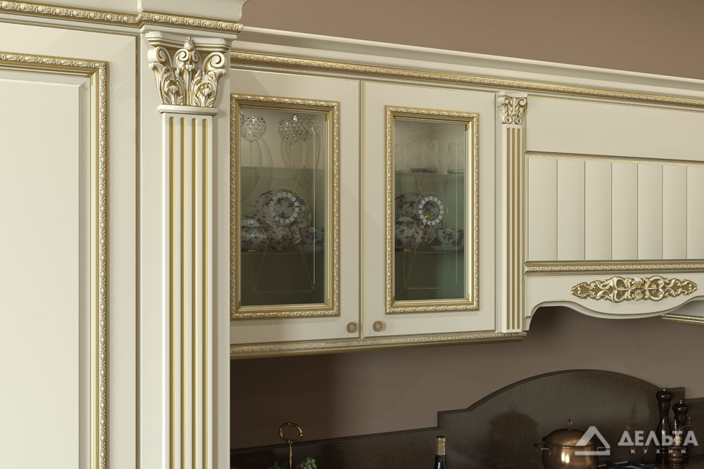 Основные черты кухни «Ампир» - это торжественность, парадность, строгость и утонченность. Но, несмотря на всю свою театральность и помпезность, кухня «Ампир» отличается логичностью и простотой. Все элементы кухни расположены упорядочено и симметрично. Чет
