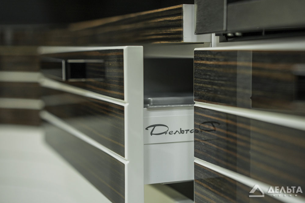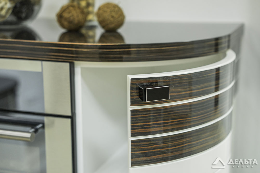 Коллекция «Барселона» - это эффектное сочетание эмали, зеркального глянца и натурального шпона. Благодаря гармоничному тандему гладких поверхностей и фактуры дерева кухонные гарнитуры всегда получаются изящными и элегантными. Несмотря на выраженную привер